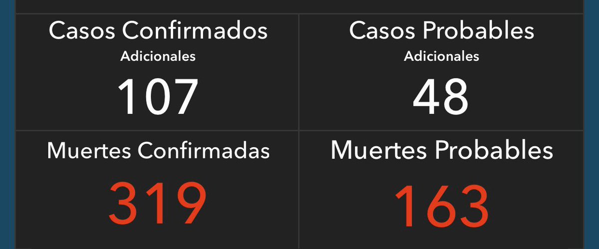 •359 casos confirmados de #COVID19 registrados hoy @DeptSaludPR. Muestras del 6 al 16 de octubre (+69 casos previos, del 3 de agosto al 5 de octubre, -1 caso duplicado).