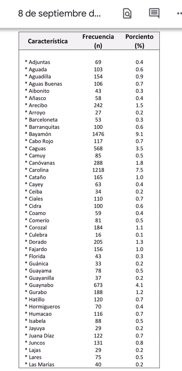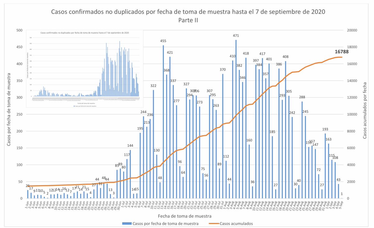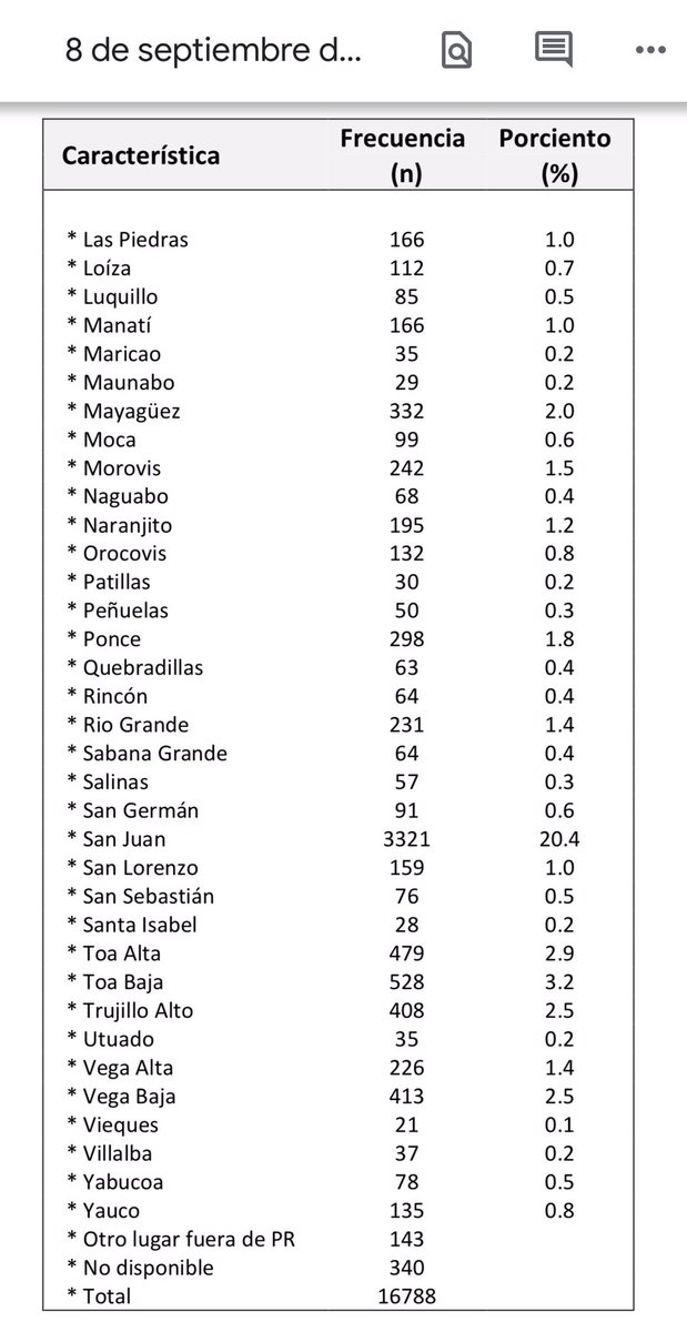 2.) 16,788 casos de #COVID19 acumulados en #PuertoRico. Muestras del 9 de marzo al 5 de septiembre.
