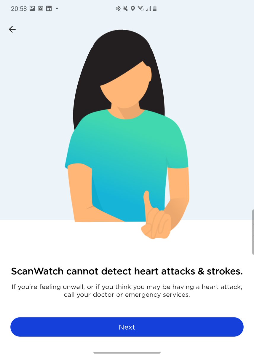 Set up takes a while, as you have to activate all the "health" features of the Scanwatch, which involves having to read a lot of information to understand what each feature can and cannot do - this is for the "medical grade ECG" feature ImageImageImageImage