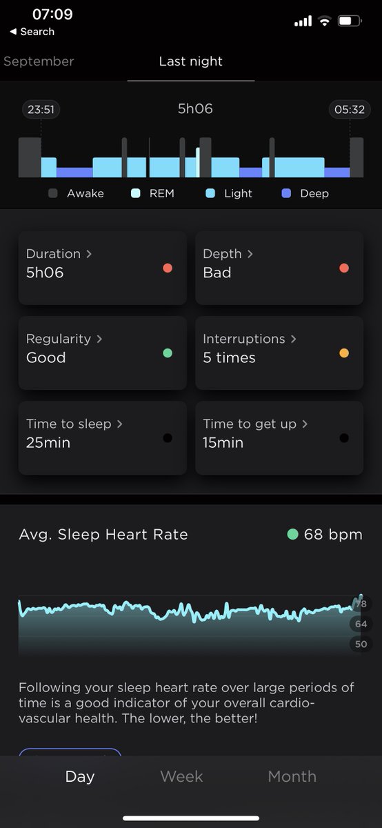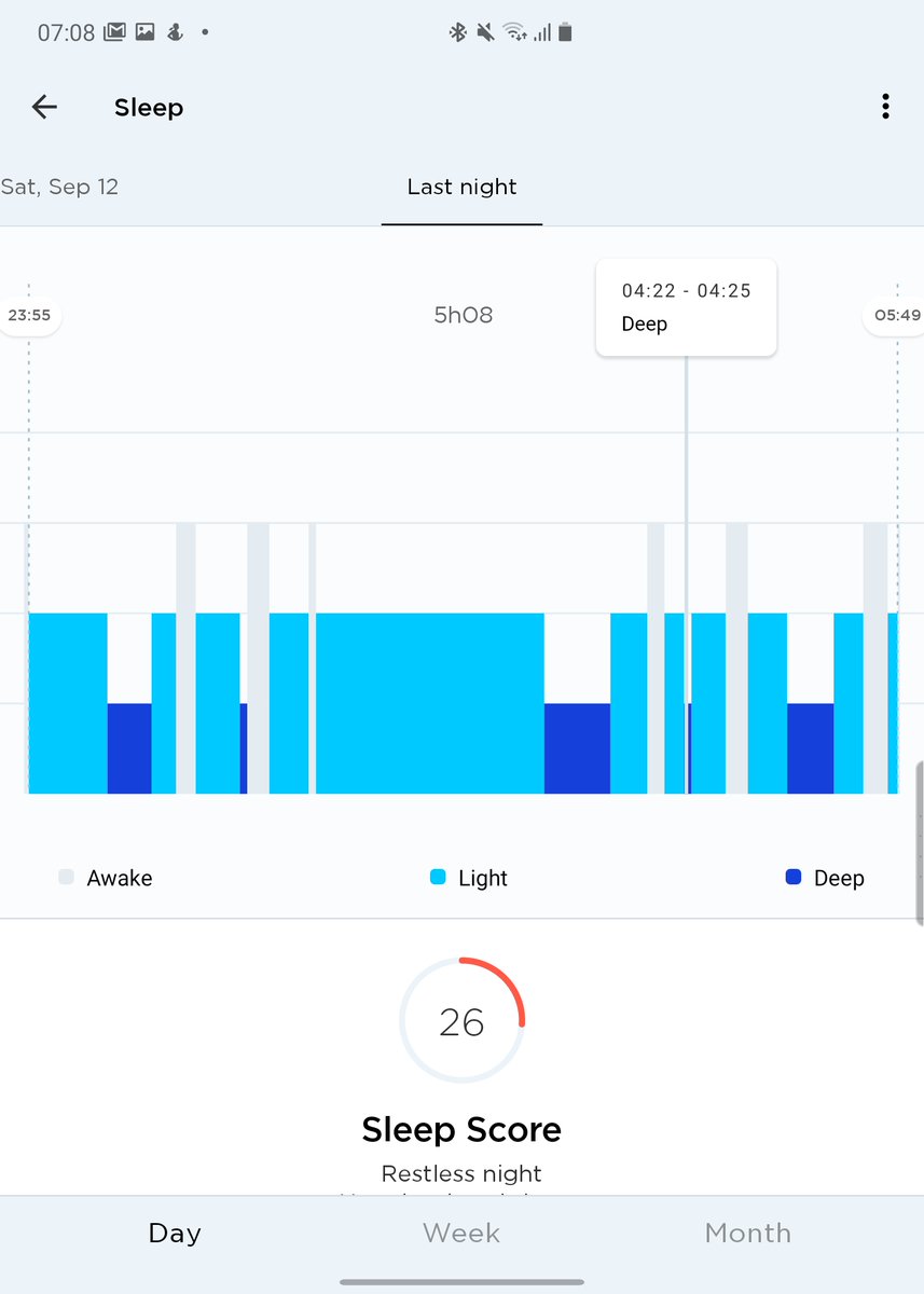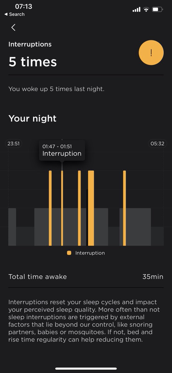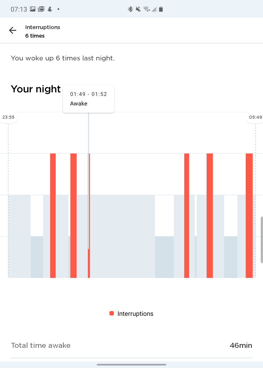 How many times did I wake up last night and how long was I awake for in total? Scanwatch (white) seems to be picking up 1 more interruption and shows my total awake time to be higher than the sleep mat (black) ImageImage