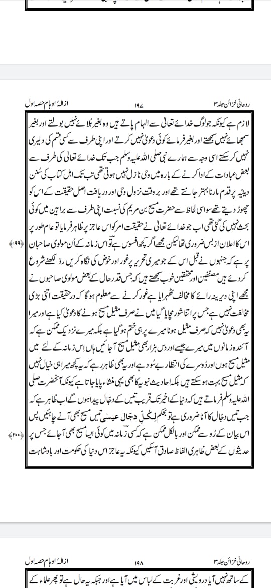 (ازالہ اوہام حصہ اول صفحہ 199 مندرجہ روحانی خزائن جلد 3 صفجی 197)