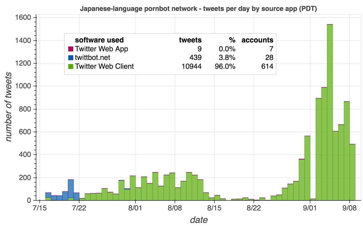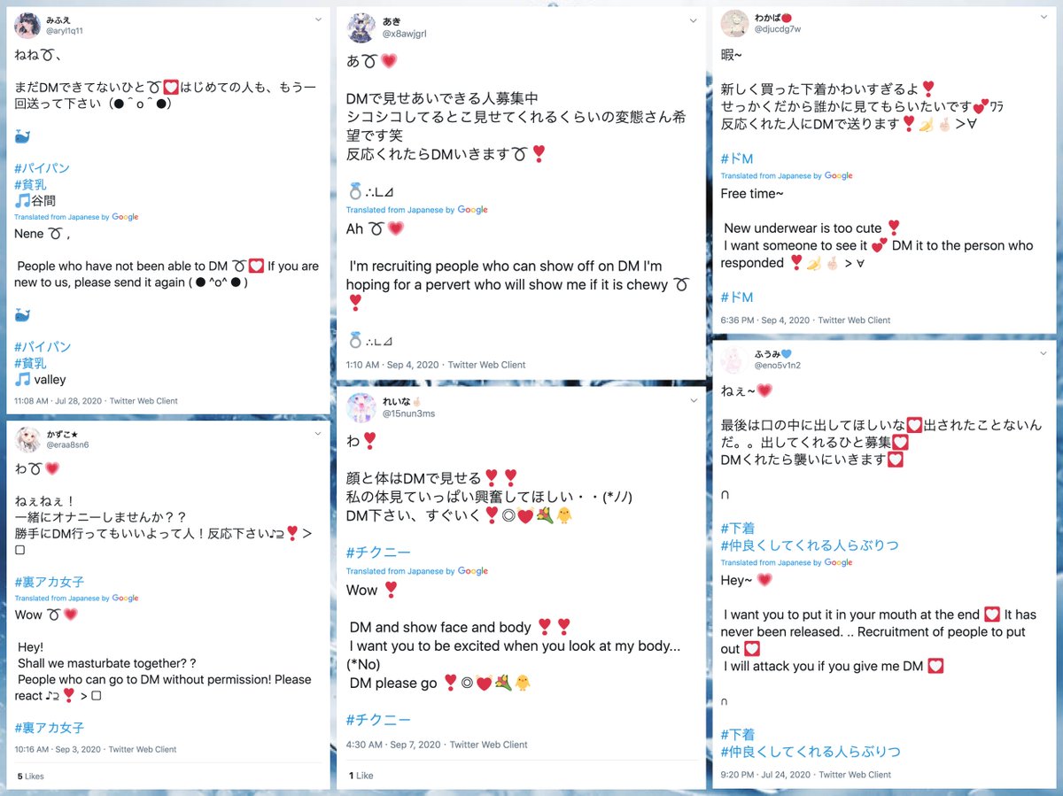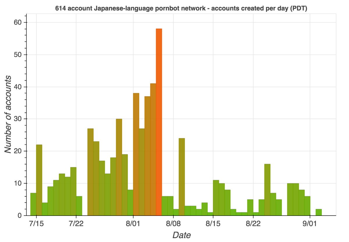 The Japanese-language pornbot network described in this June 2020 thread has been shut down by Twitter, but a replacement appears to have arisen and (like its predecessor) is soliciting DMs. #TuesdayThoughts