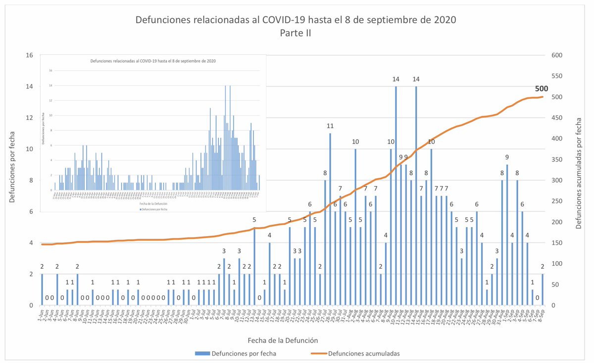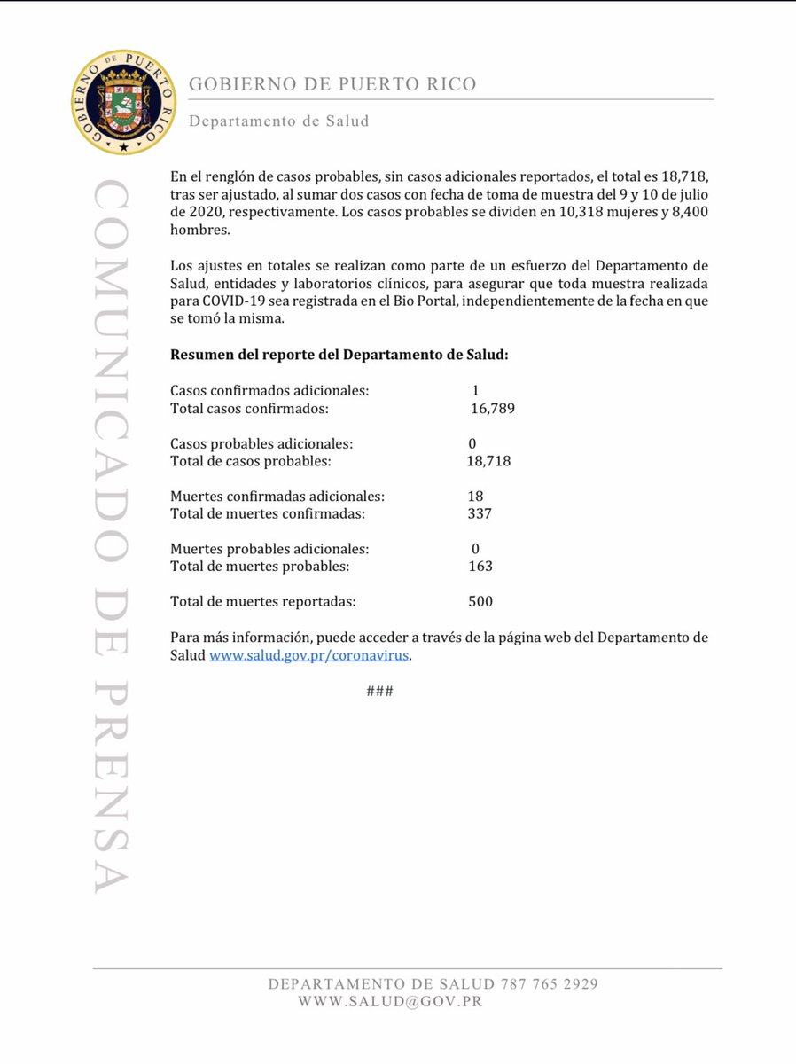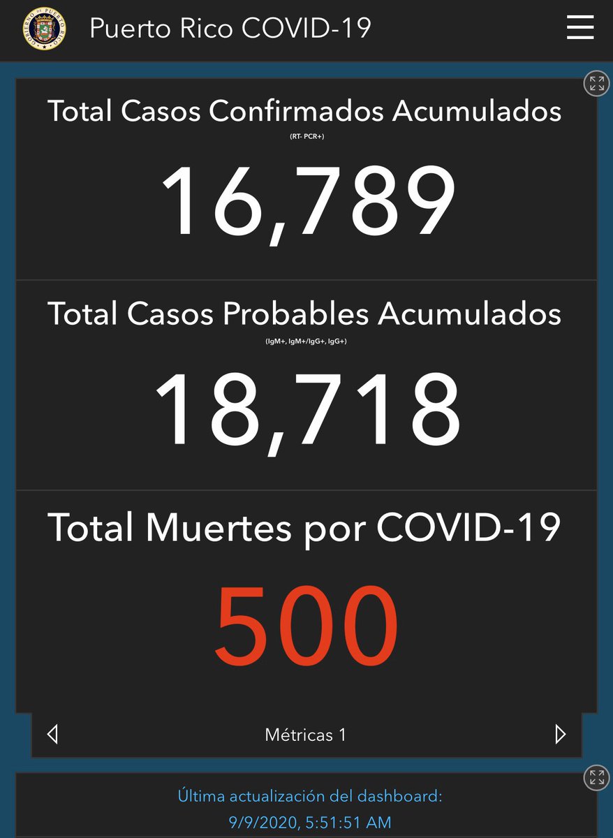 Con estas muertes, #PuertoRico llega a la cifra de 500 muertes acumuladas por el #coronavirus (entre confirmadas y probables) desde que comenzó la pandemia en marzo.