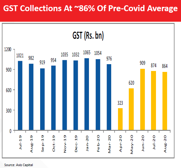 #GST is a good proxy of an economic progress. GST collections in August are now ~86% of pre-Covid levels.