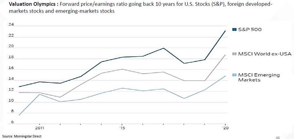 The valuation gap between S&P500 vs rest of the world is quite apparent now. Only time will tell if the funds would flow to Emerging Economies to take opportunity of the valuations.