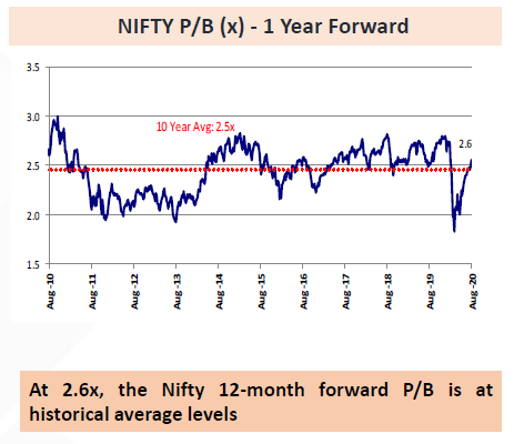 At Price to Book valuation, it is also evident that the recent market run up has resulted in markets being now 'reasonable' valued.