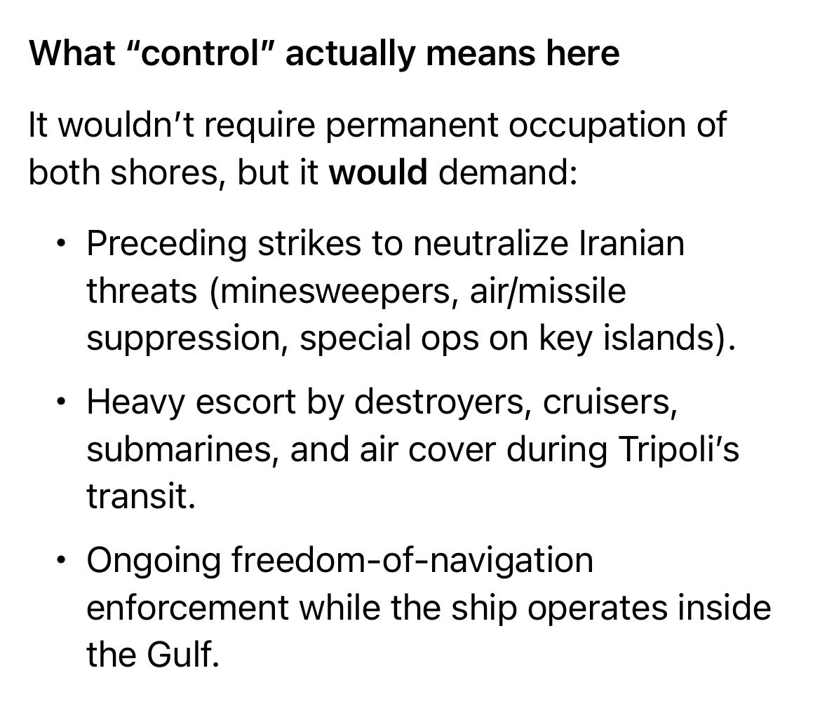 Would the US need to control the Strait of Hormuz in order to get the Tripoli into position? Image