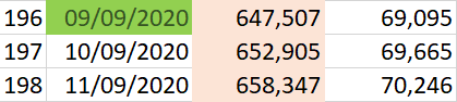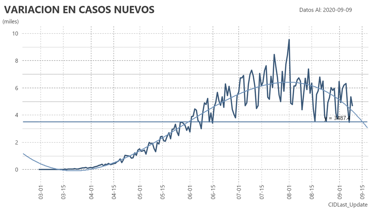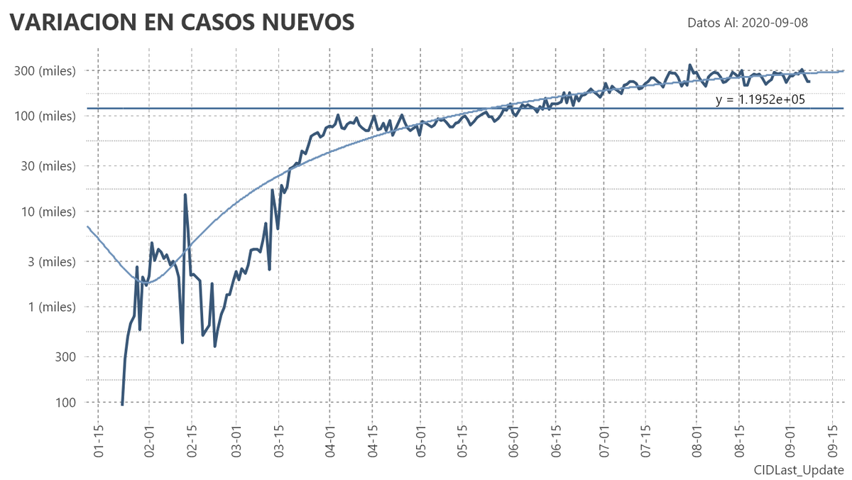 El porcentaje de aumento de casos contra el día anterior fue del 0.83%. Se llegará a 700 mil casos para el día 17 de septiembre.