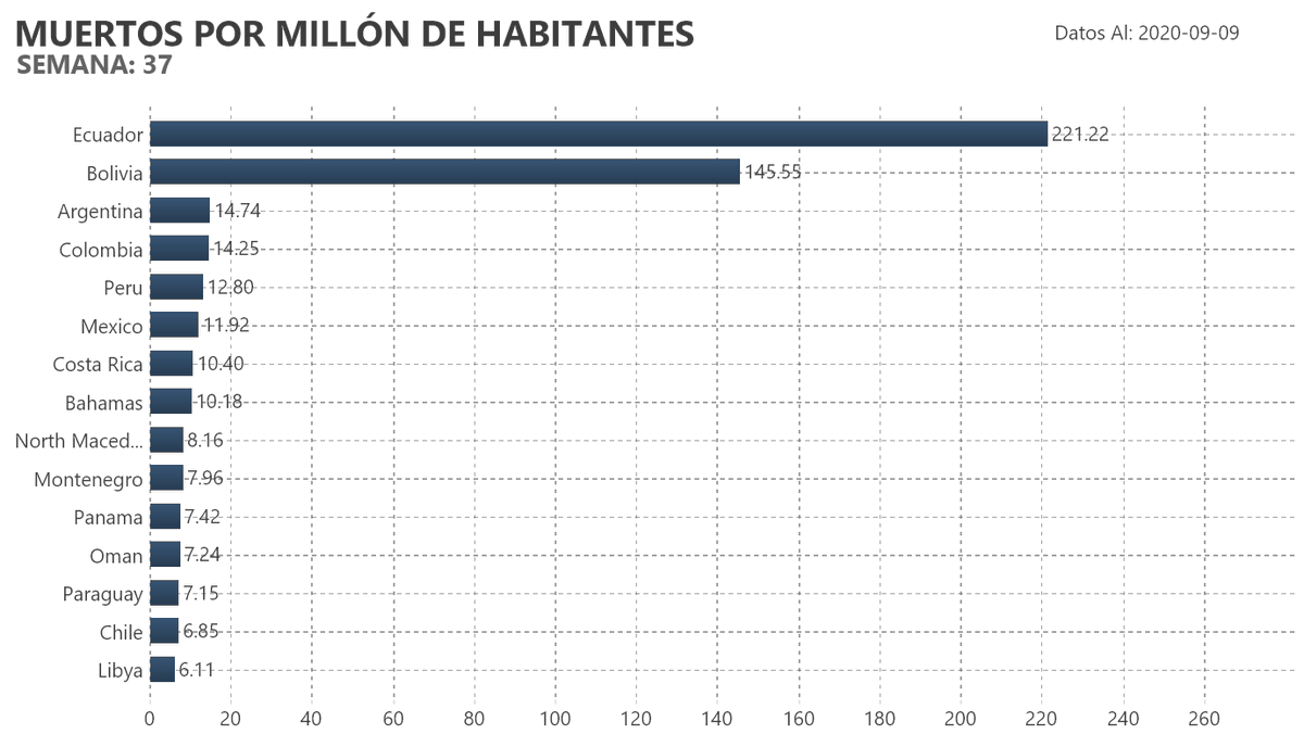 Muertes por millón para la semana 37.
