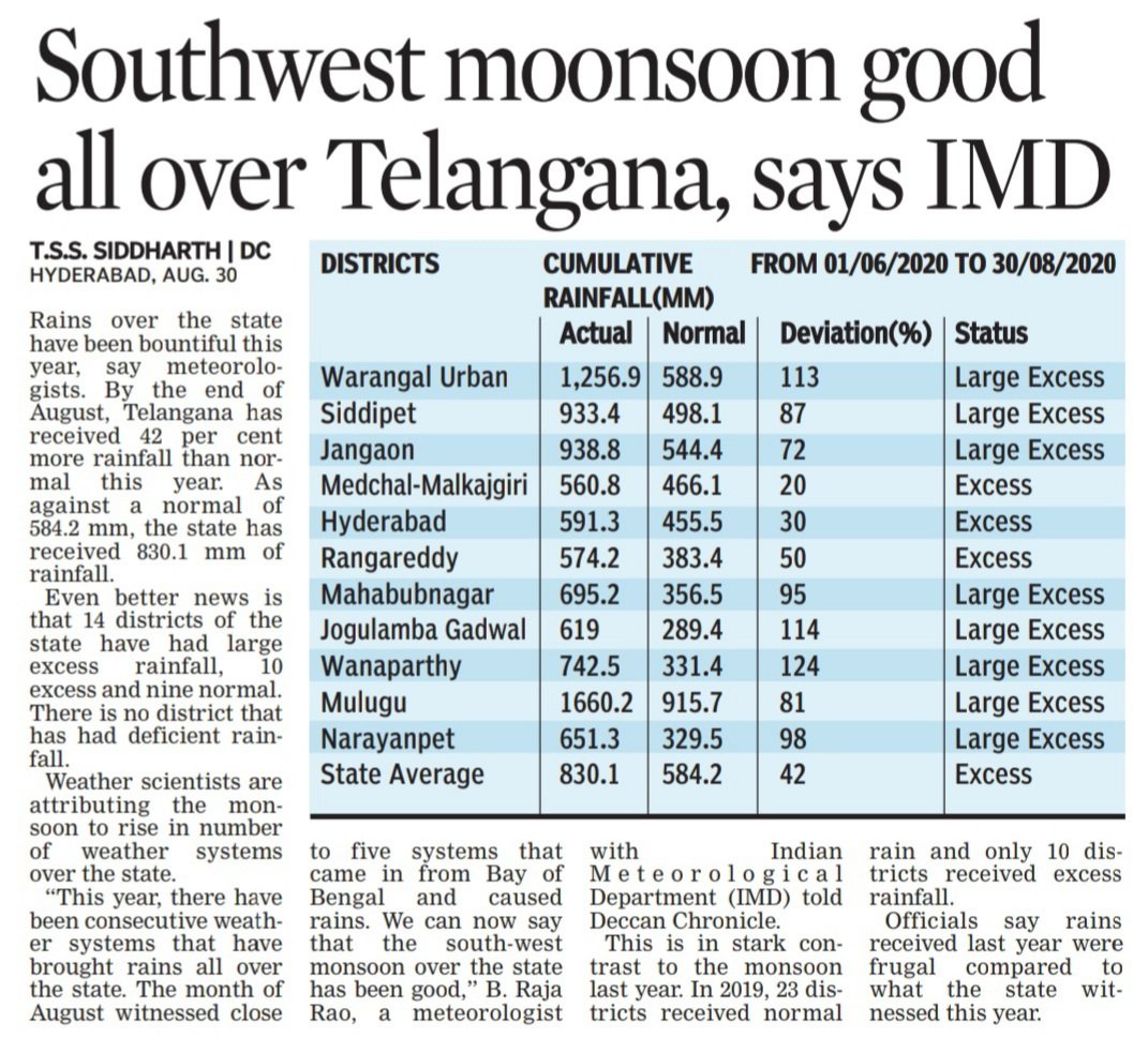 Deccan Chronical also says there is a huge amount of excess rainfall.