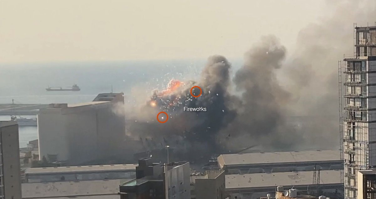 Le nitrate d'ammonium n'explose normalement pas tout seul, mais a généralement besoin d'une sorte de "détonateur". Les experts en explosifs expliquent au NYT que les feux d'artifice que l'on a vus sauter au-dessus du hangar auraient pu faire l'affaire.