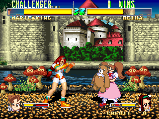 The PS1 port of MvC is, needless to say, very compromised, but they tried their best. Performing a Duo Team Attack, for instance... Brings in a ~clone of your opponent~. Don't need to load a partner into memory if they're already there!