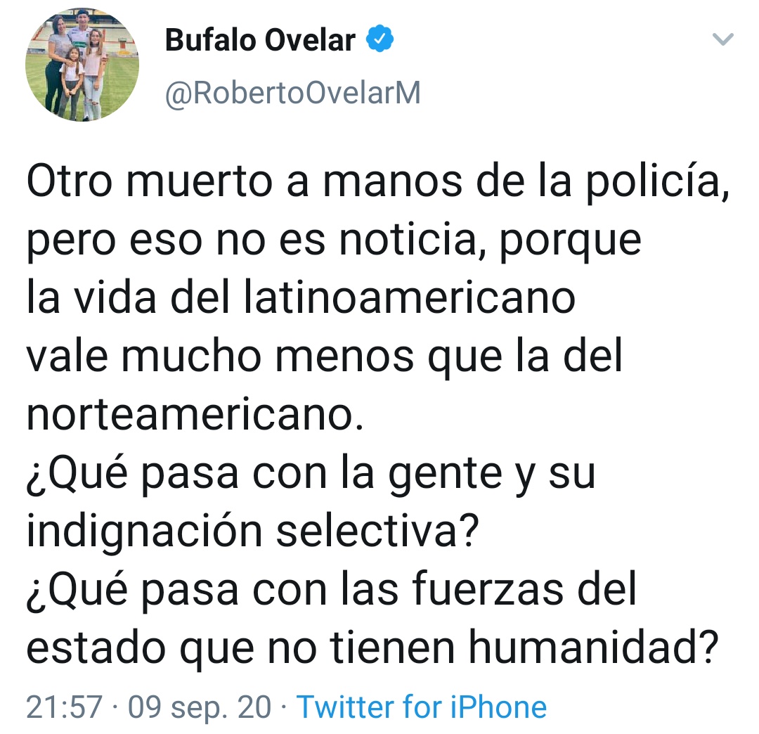 🇨🇴 #Colombia vive momentos convulsionados tras el asesinato del ciudadano #Ordoñez por parte de la policía con descargas de una pistola Taser. Así lo repudió en sus redes @RobertoOvelarM haciendo alusion a que el hecho no tuvo la misma repercusión que lo que ocurre en #EEUU