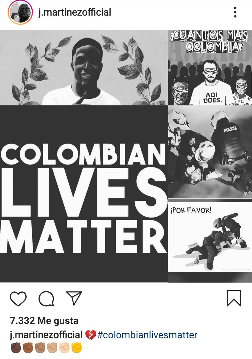 “La policía golpeó y mató a Ordóñez anoche. Colombia se convirtió en zona de guerra, mientras protesta contra la brutalidad policial. La policía mató a tiros a un par de manifestantes y algunos resultaron heridos”