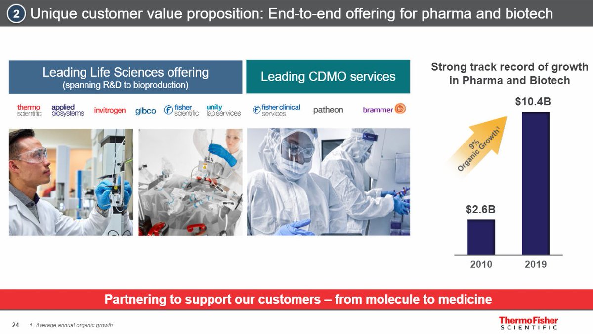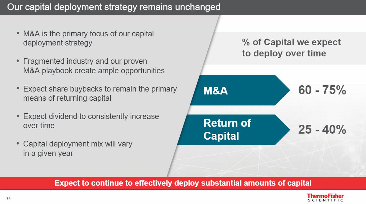 2/ TMO uses cash generated from their resilient businesses, laboratory equipment, supplies and services as well as diagnostic instruments, and through a systemic M&A program, buys high optionality businesses serving the pharmaceutical industry