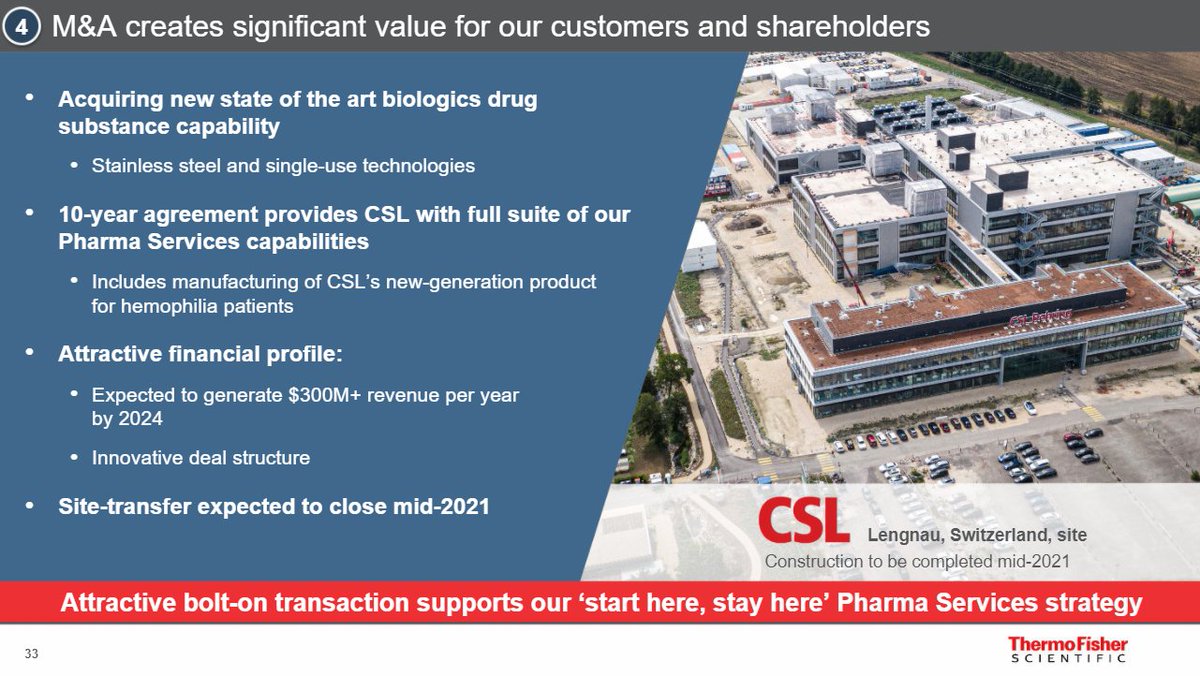 5/ In June 2020, TMO announced a deal to lease CSL's biomanufacturing facility which The Company will operate within their CDMO business