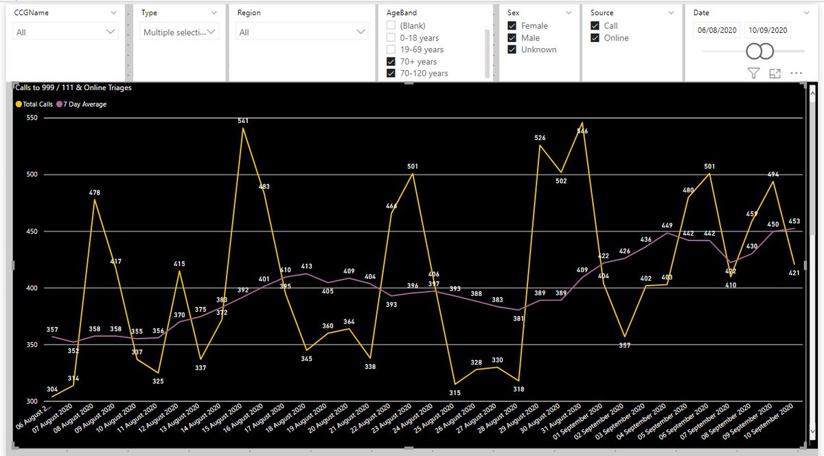 5/ 70+ just 999 calls the most important area very slight increase of 2 so pretty flat yesterday.