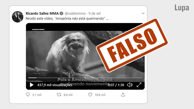 O ministro do Meio Ambiente, @rsallesmma, publicou um vídeo que nega as queimadas na Amazônia. A peça mostra cenas de floresta, populações indígenas e animais, incluindo um mico-leão-dourado, comum na Mata Atlântica. Leia: bit.ly/3k92bi2. #AgênciaLupa#Amazônia