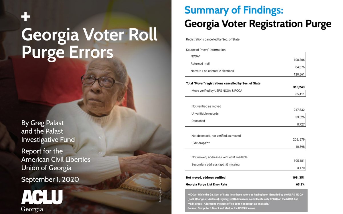 We found 198,351 #Georgia voters who supposedly moved from their registration addresses had not moved at all and were wrongly purged — a 63.3% error rate.