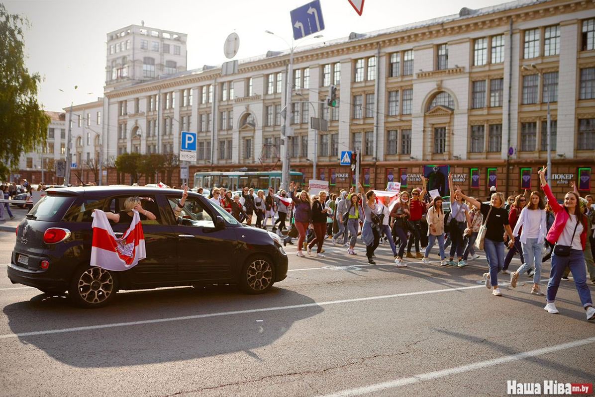 More than 10000 women are taking part in the Women’s March in Minsk. They are chanting ”Lukashenka, you are fired”