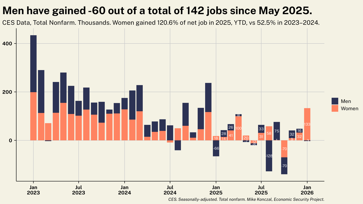 That's actually less than the ~121% of job gains women had in 2025, so progress for men? /3