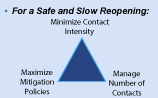 Or, in wonky terms, this chart (I do love my charts). Again, it is not binary: we need to minimize contact intensity (if not eliminate, such as bars); manage number of contacts (no big events); and maximize mitigation (masking, WFH, "healthy" buildings, etc). 6/