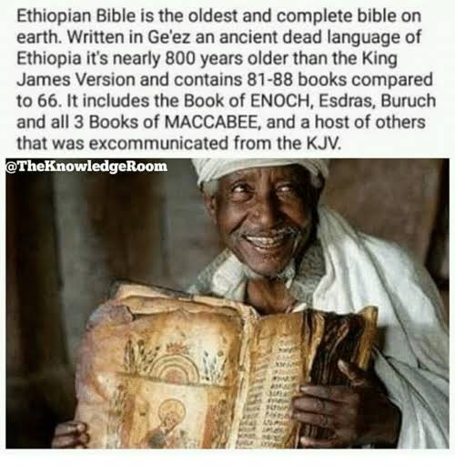 They were written on goat skin in the early Ethiopian language of Ge’ez. It is also World’s first illustrated Christian Bible. How come no one talks about the Ethiopian Bible that has all the original scrolls in it?
