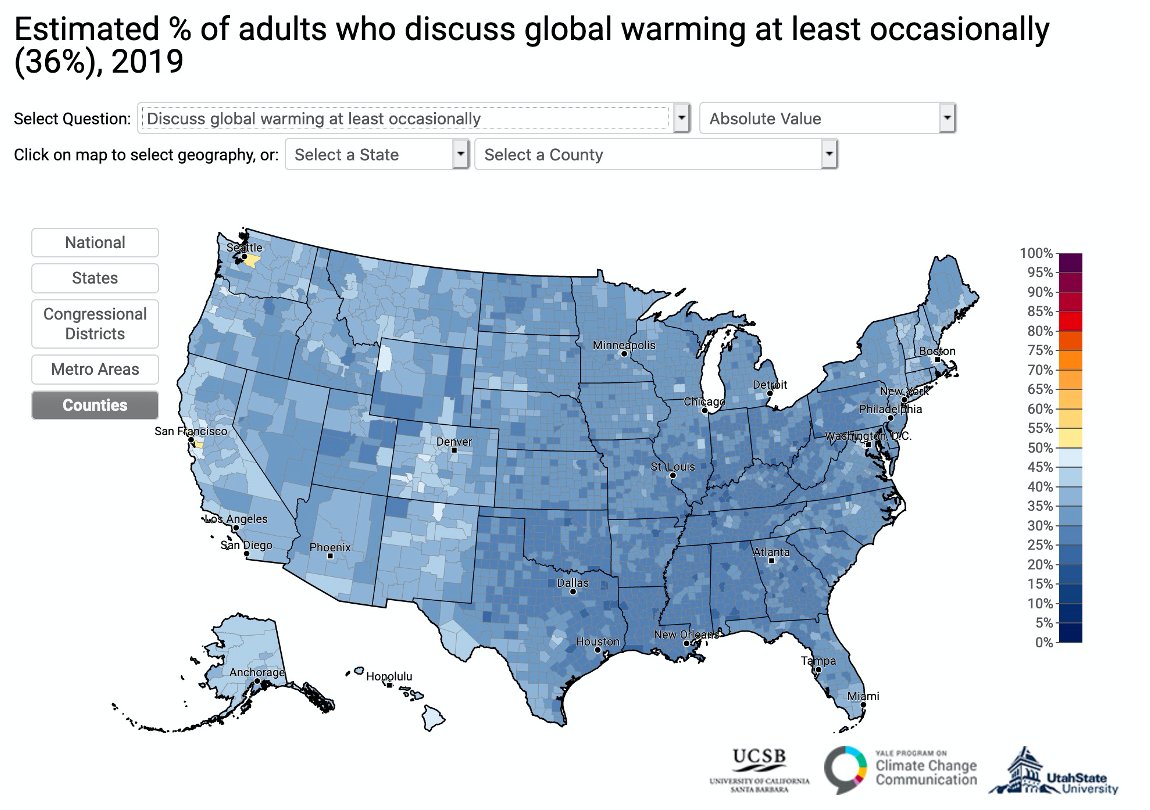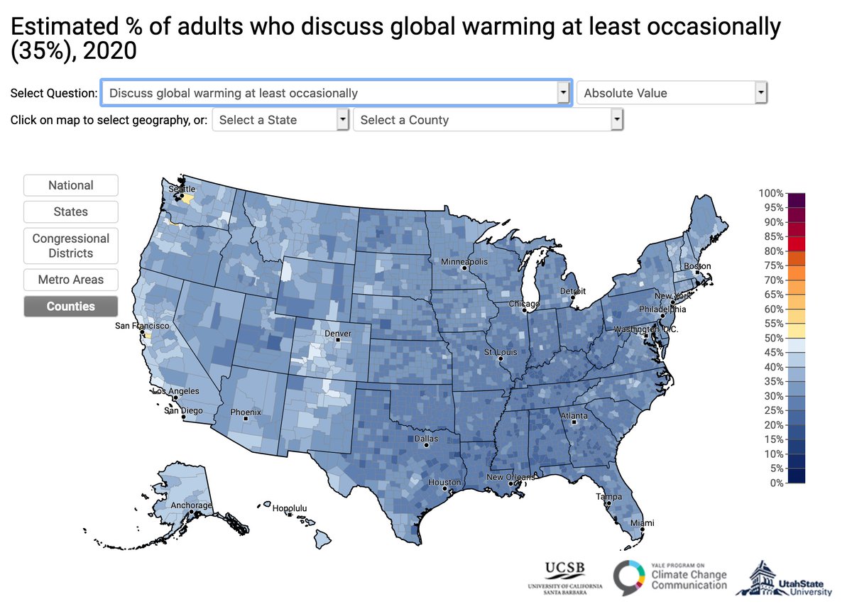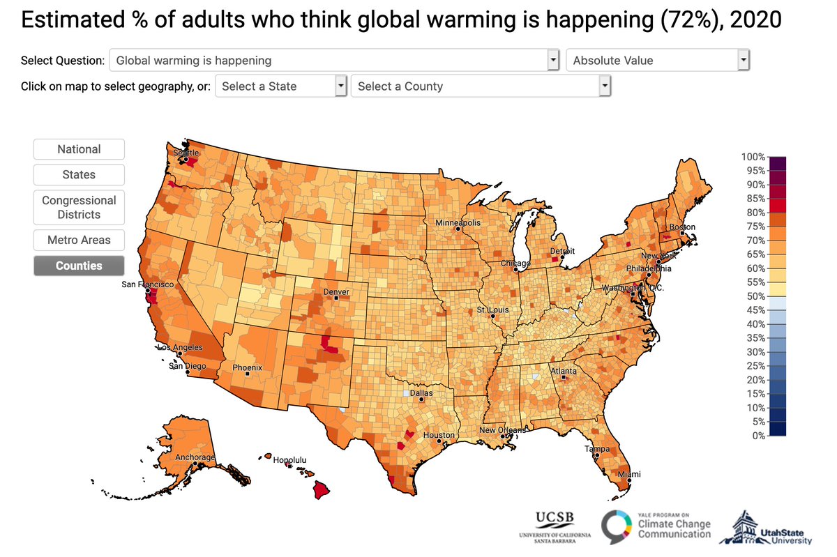 Hey so @YaleClimateComm has released a new set of my very fav maps that break down US opinion by congressional district + county. Here are two things people's opinions changed a LOT on in just one year, and two where they did NOT. Any guesses on which they are? Here we go ...