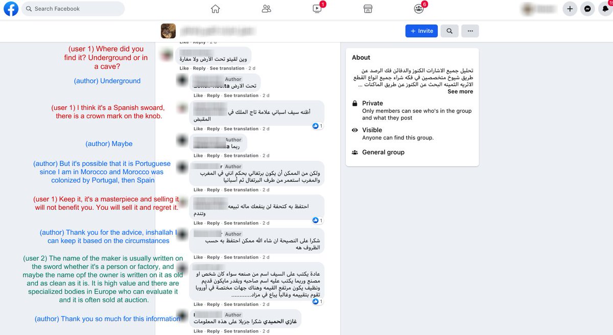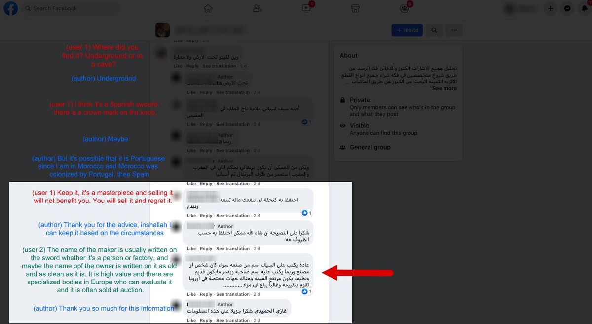 As such, many users don't know the value of what they find, and take to Facebook for info and buyers. Such is the case of this sword from a user in Morocco