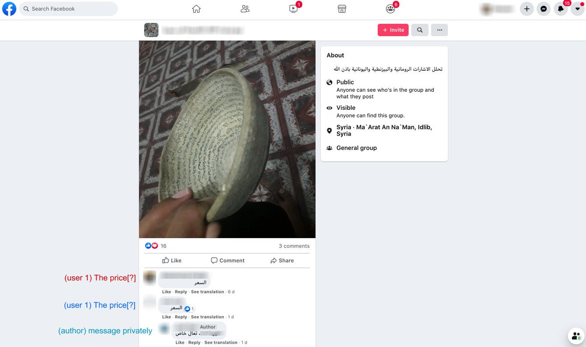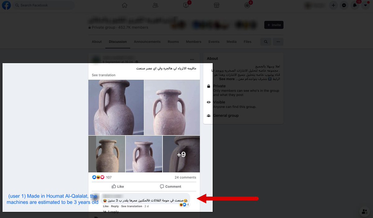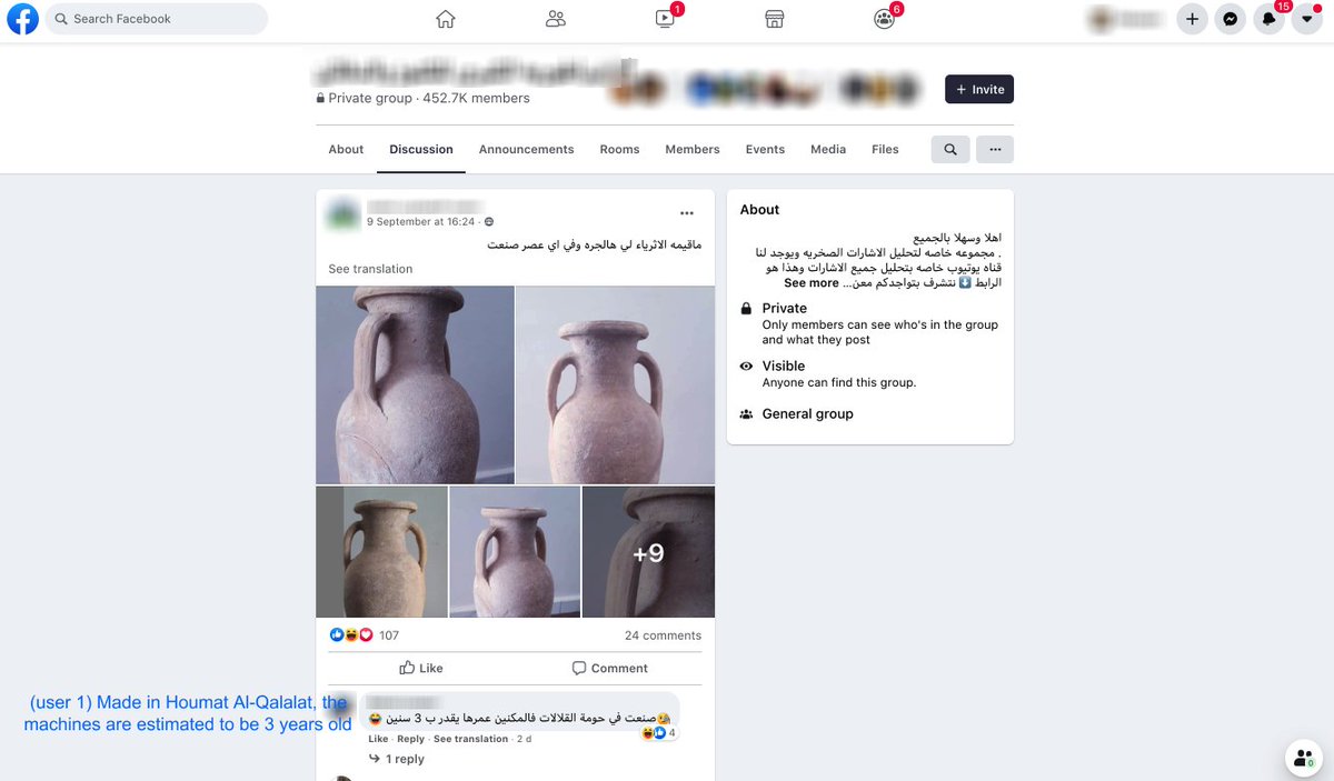 Here in the largest Facebook antiquities trafficking group, a user wants to know the value and age of a jar in his possession