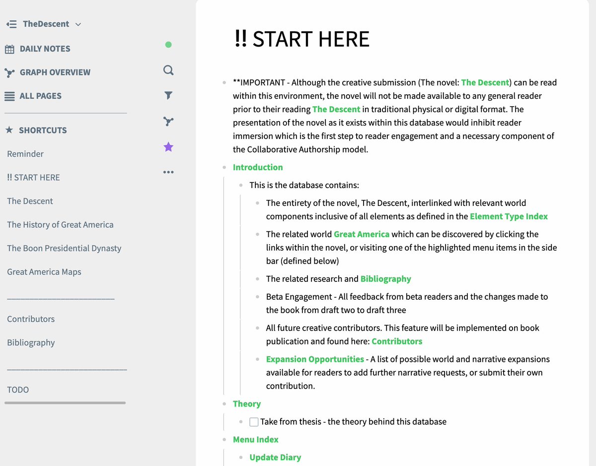 What better way to illustrate my theory that collaborative authorship (between creative entrepreneur & creator reader) is the future of self-publishing. We have decided to submit creative portion (novel) as a @roam research graph 2/3