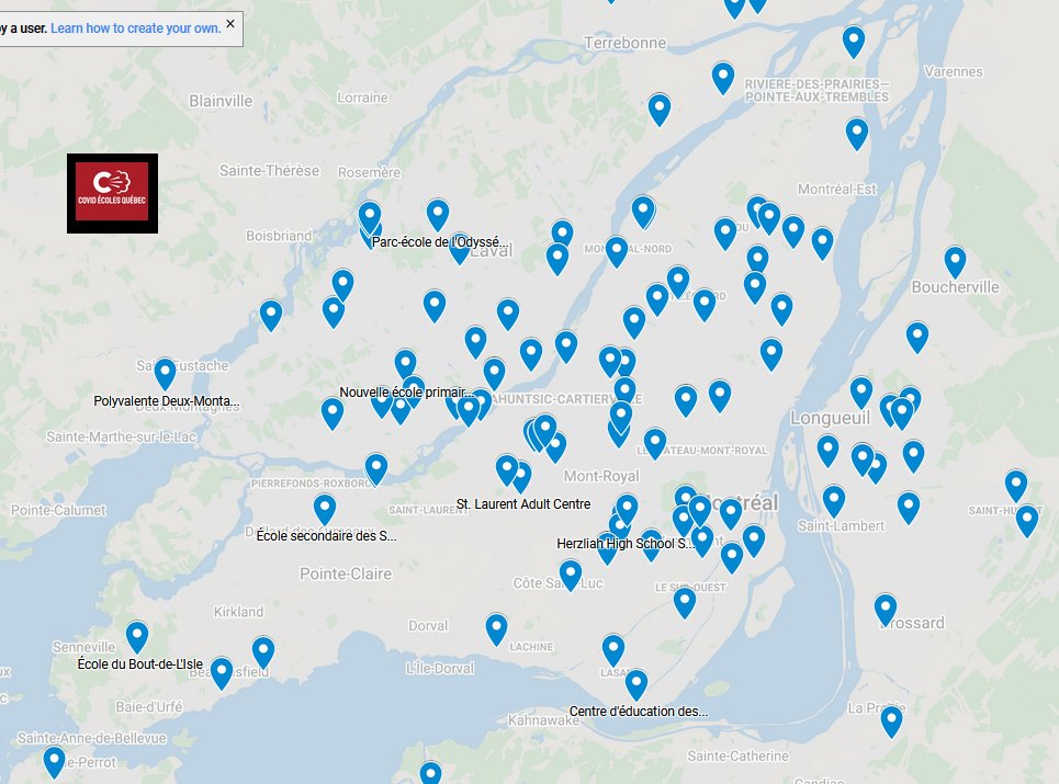 9) The number of Montreal schools where at least one teacher or student has tested positive increased to 60 Saturday from 57 the day before. Authorities have officially confirmed two school outbreaks, but I’ve been informed of a third unofficially. See the map below.