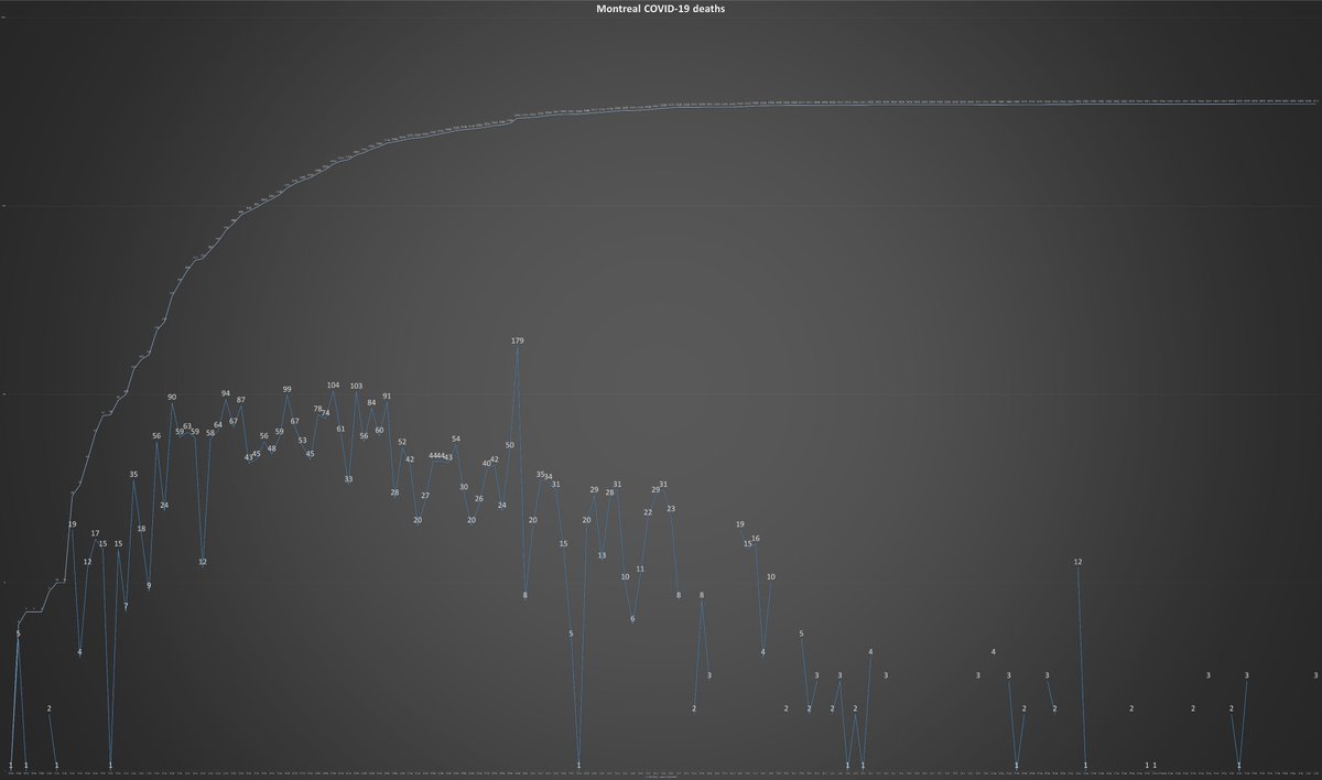 10) After not declaring any #COVID19 fatalities for eight days, Montreal added three ones retroactively to its death toll, which now stands at 3,477, higher than those of the nations of Ukraine (3,148), Japan (1,412), Portugal (1,860) or Guatemala (2,929).