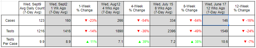 At 118 daily cases this past week, we're at the same levels we were at in the second week in June.