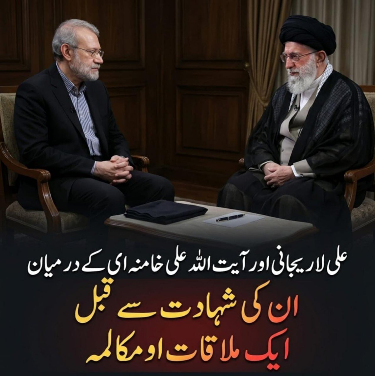 آیت اللہ علی خامنہ ای اور علی لاریجانی کے درمیان ان کی شہادت سے قبل آخری ملاقات اور مکالمہ: