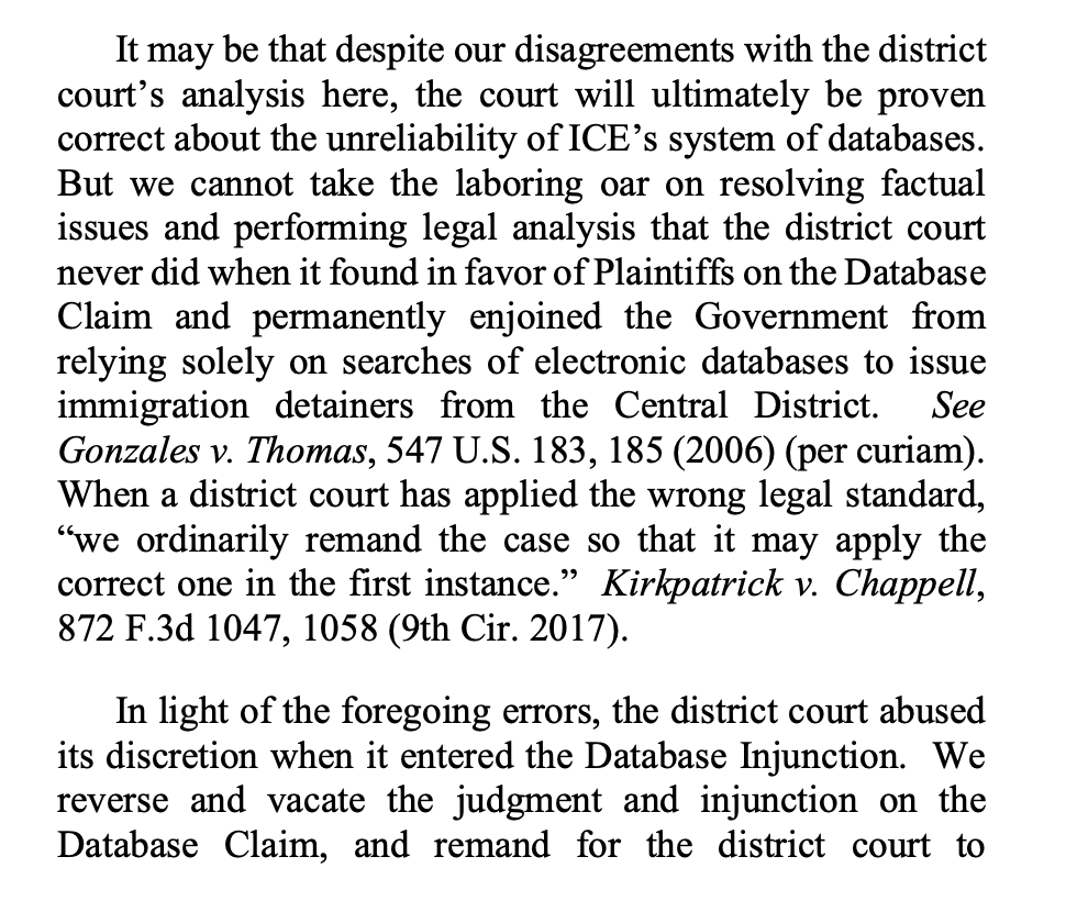 (3) The district court erred in making sweeping conclusions about the lack of reliability of the government's immigration database and saying the government couldn't rely on it.