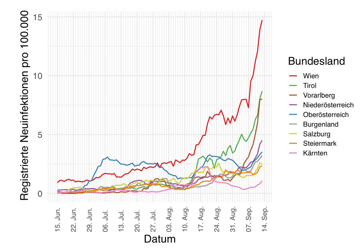 Inzidenzverlauf vergangene 8 Wochen bundesländerweise