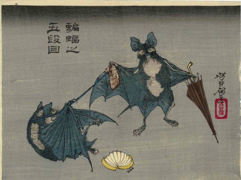 Tsukioka Yoshitoshi, Bats and Umbrellas , 1882