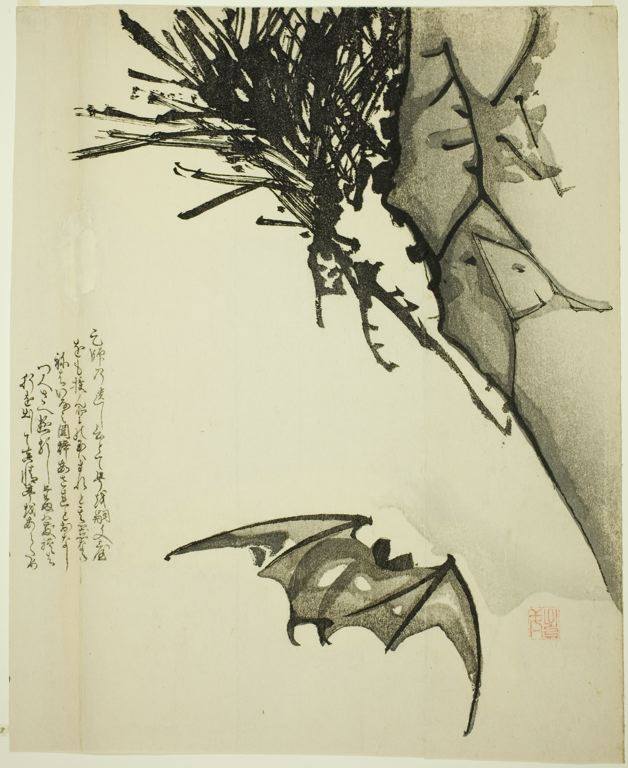 Hasegawa Tōhaku (1539 – 1610), A Bat Flying near a Pine Tree