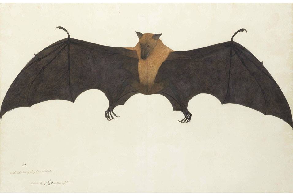 Painting attributed to Bhawani Das. Great Indian Fruit Bat, ca. 1777–82. Kolkata / Calcutta, pen and ink, watercolor with gum arabic, with bodycolor, on watermarked paper