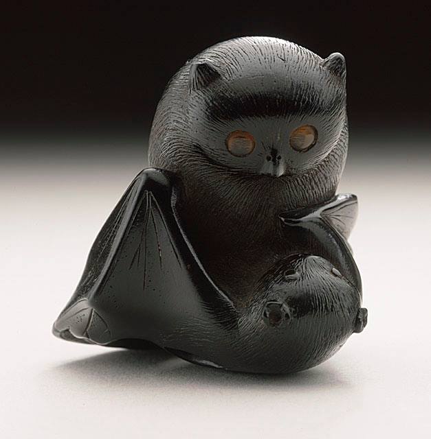 Horaku, Owl and Bat netsuke, early to mid 19th century Japan