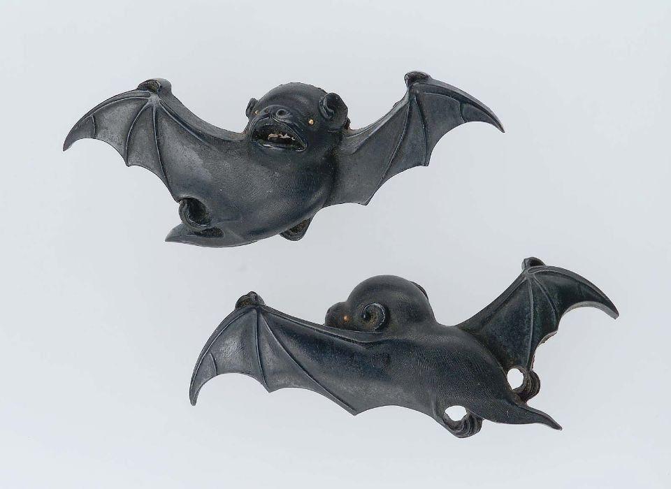 Japanese Menuki /目貫 (sword mountings) in the shape of bats