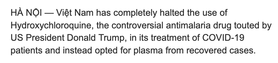 "Malaysia has stopped using hydroxychloroquine against Covid-19 as the decades-old malaria medicine has been proven to be ineffective on the coronavirus"