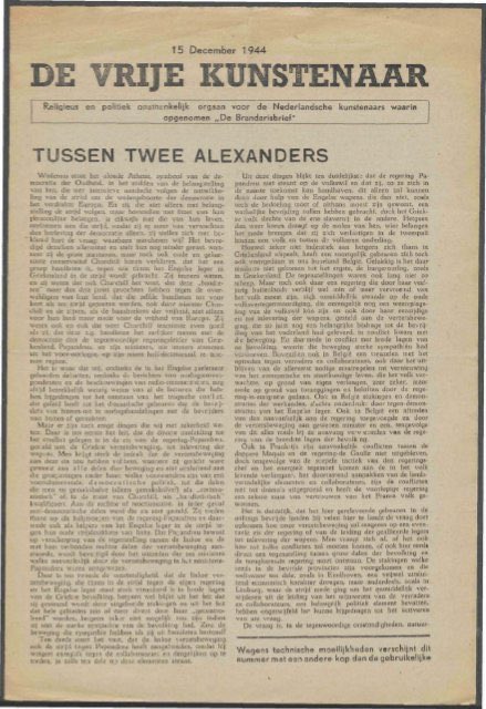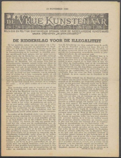 The magazine was called Branderisbrief (1942) & it’s purpose was to oppose the Nazis’ edicts. In 1943 it merged with De Vrije Kunstenaar (The Free Artist) - that was led by the sculptor Gerrit van der Veen & it urged mass resistance.
