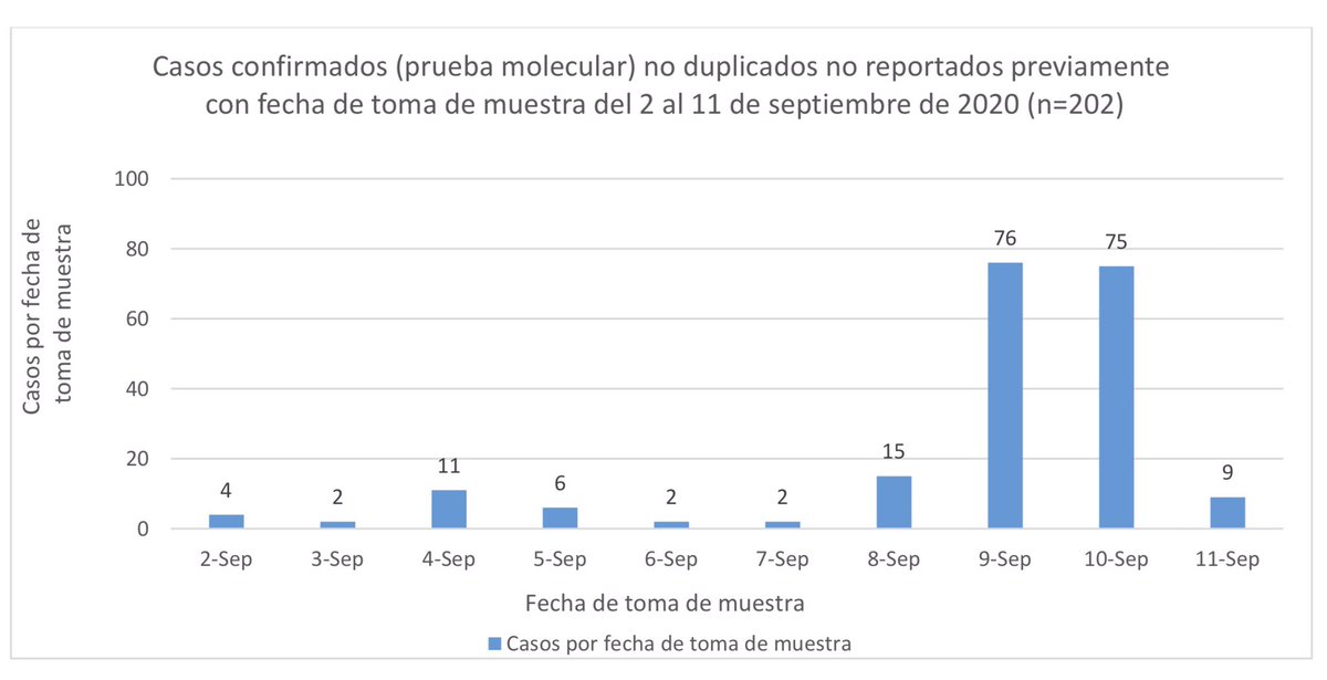 1.) 202 casos CONFIRMADOS de #COVID19 registrados hoy por @DeptSaludPR. Muestras del 2 al 11 de septiembre (+6 casos previos del 2 de abril al 28 de agosto).