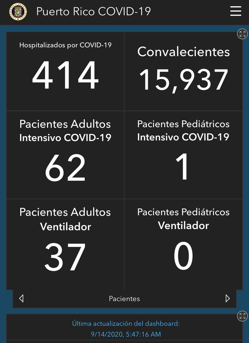 (14/septiembre) Hay 414 hospitalizados por #COVID19 en #PuertoRico (18 más que ayer).
