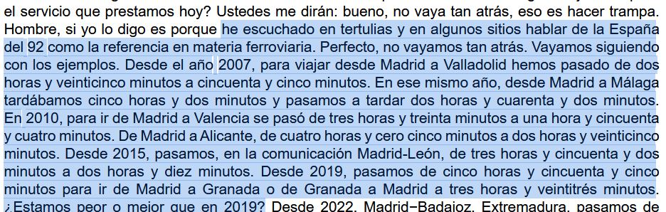 "desde Madrid a Málaga tardábamos cinco horas y dos minutos y pasamos a tardar dos horas y cuarenta y dos minutos."