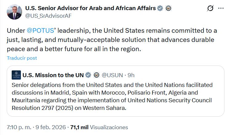 1) Entiendo que la primera confirmación OFICIAL de la reunión sobre el Sahara Occidental vino de la Misión de Estados Unidos ante Naciones Unidas.