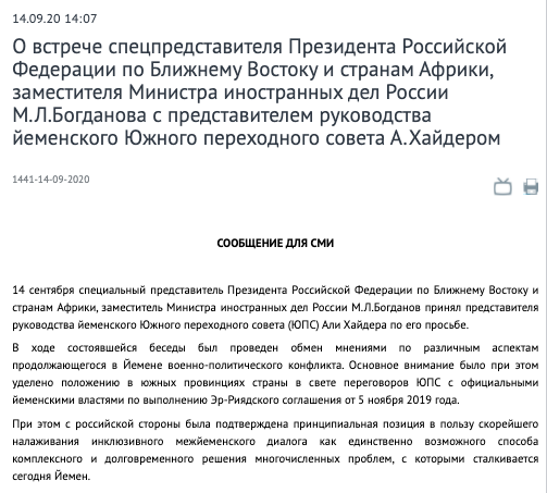 Bogdanov met with Ali Haider, the representative of the Southern Transitional Council (STC) in #Yemen, to discuss the situation there.