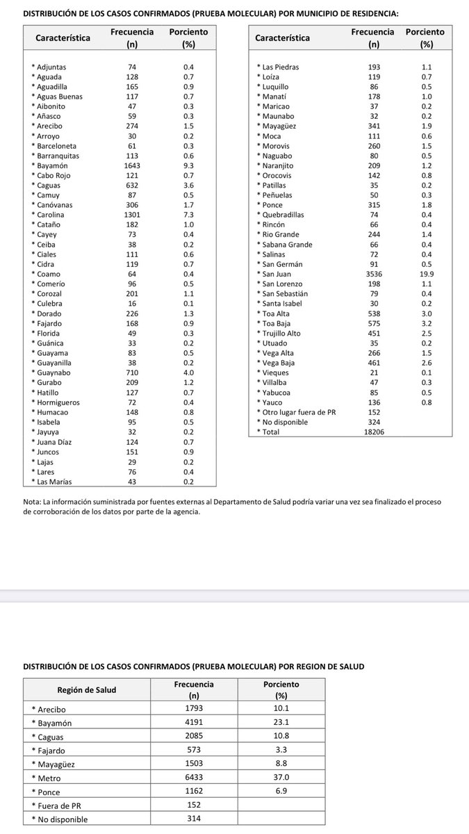 (20/octubre) La muerte confirmada por #COVID19 reportada en el informe de hoy, ocurrió el 18 de octubre. Corresponde a una mujer de 61 años, de la región de Bayamón. #PuertoRico